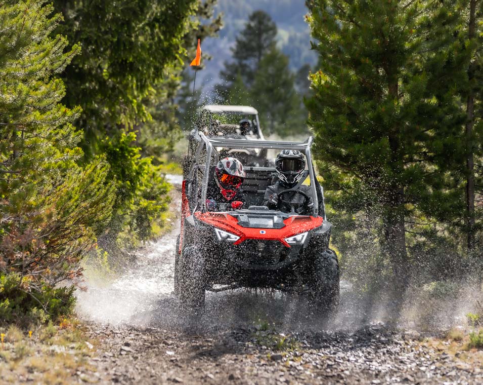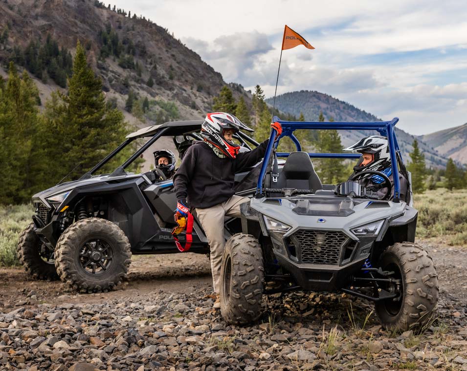 Enjoy peace of mind knowing the RZR comes with industry-leading safety features including a pin code start, adjustable speed limiter, geofencing, safety nets, industry-exclusive safety kit, and helmet aware technology.