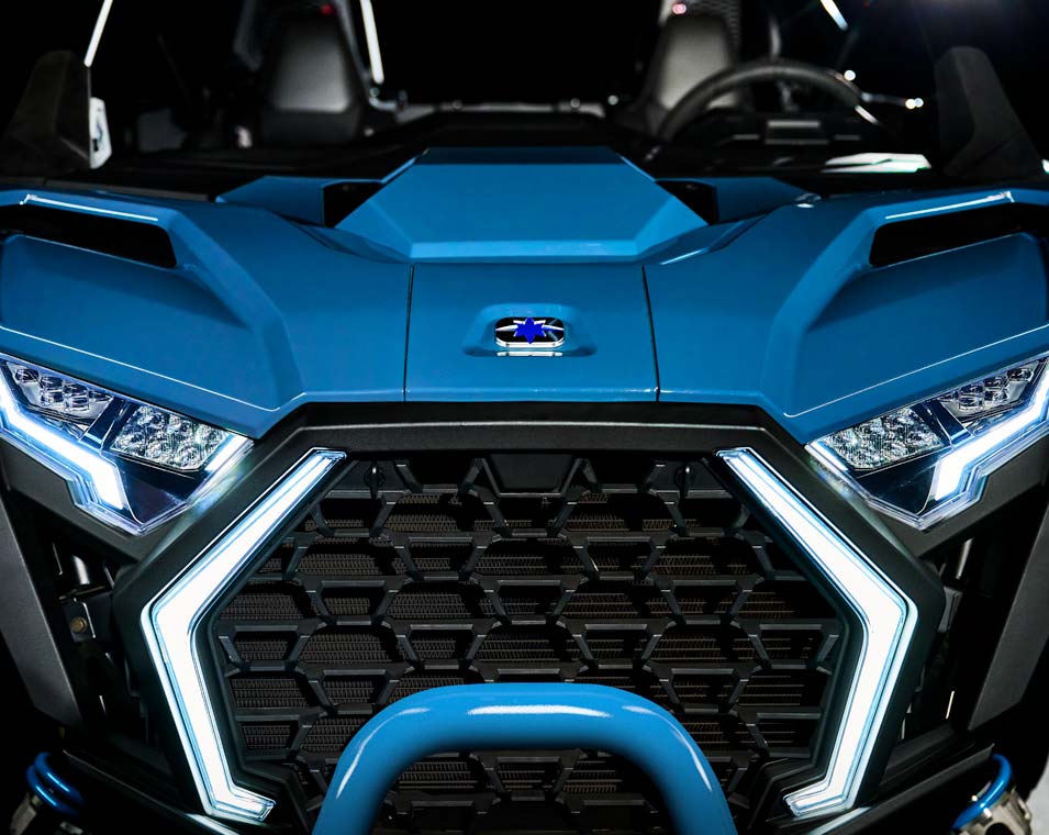 - Signature Animated RZR Fang Accent Lighting; White LED, Low / High & Red LED Tail / Brake Lights; Animated Interior Accent Lighting