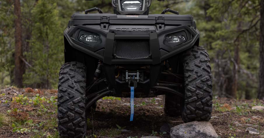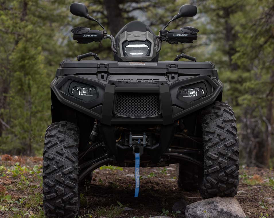 - 3,500 LB Winch with synthetic rope, Front Bumper, Driver Handguards, Mirrors, Painted Plastics, Painted Spring